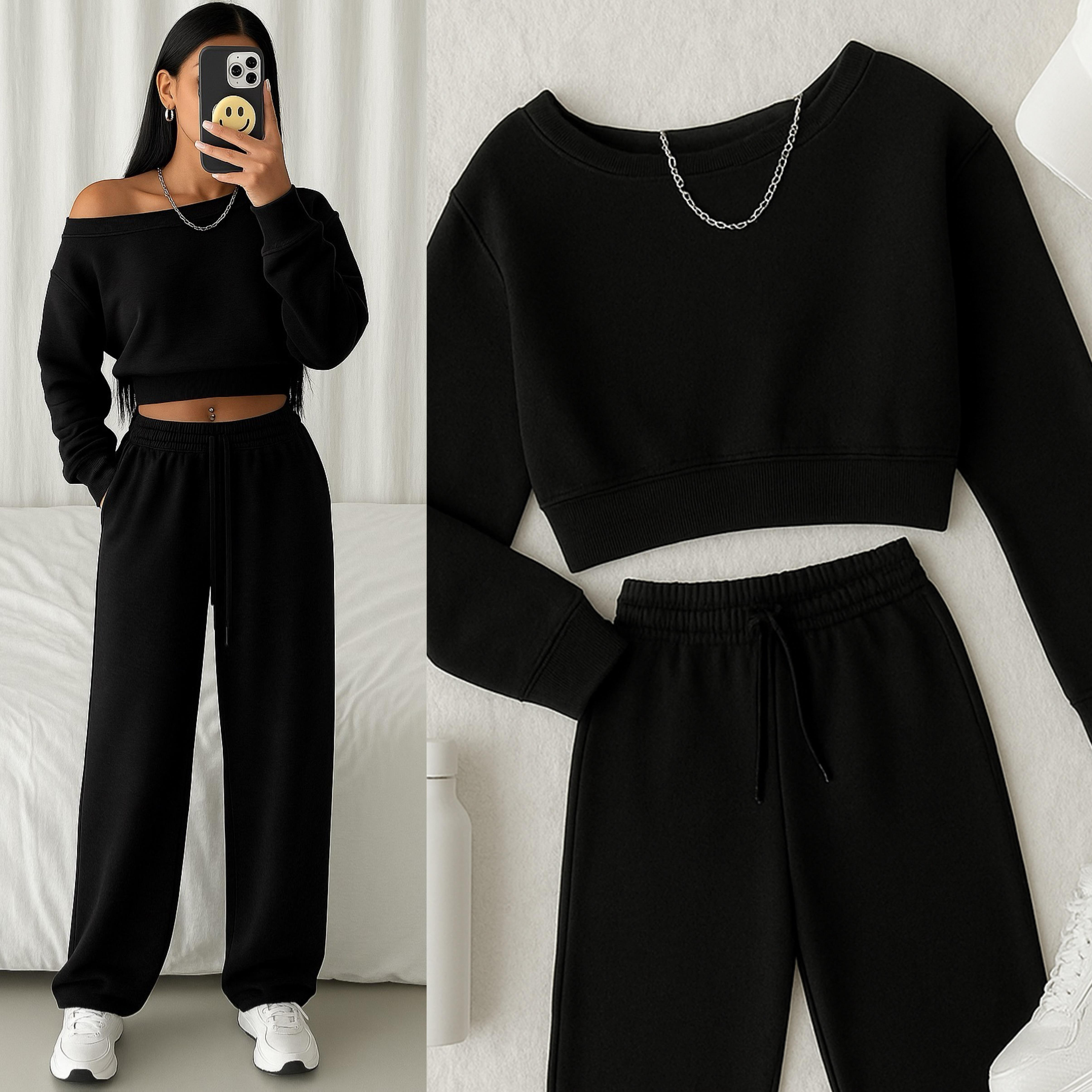 GREYME CROP SWEAT EŞOFMAN TAKIMI SİYAH