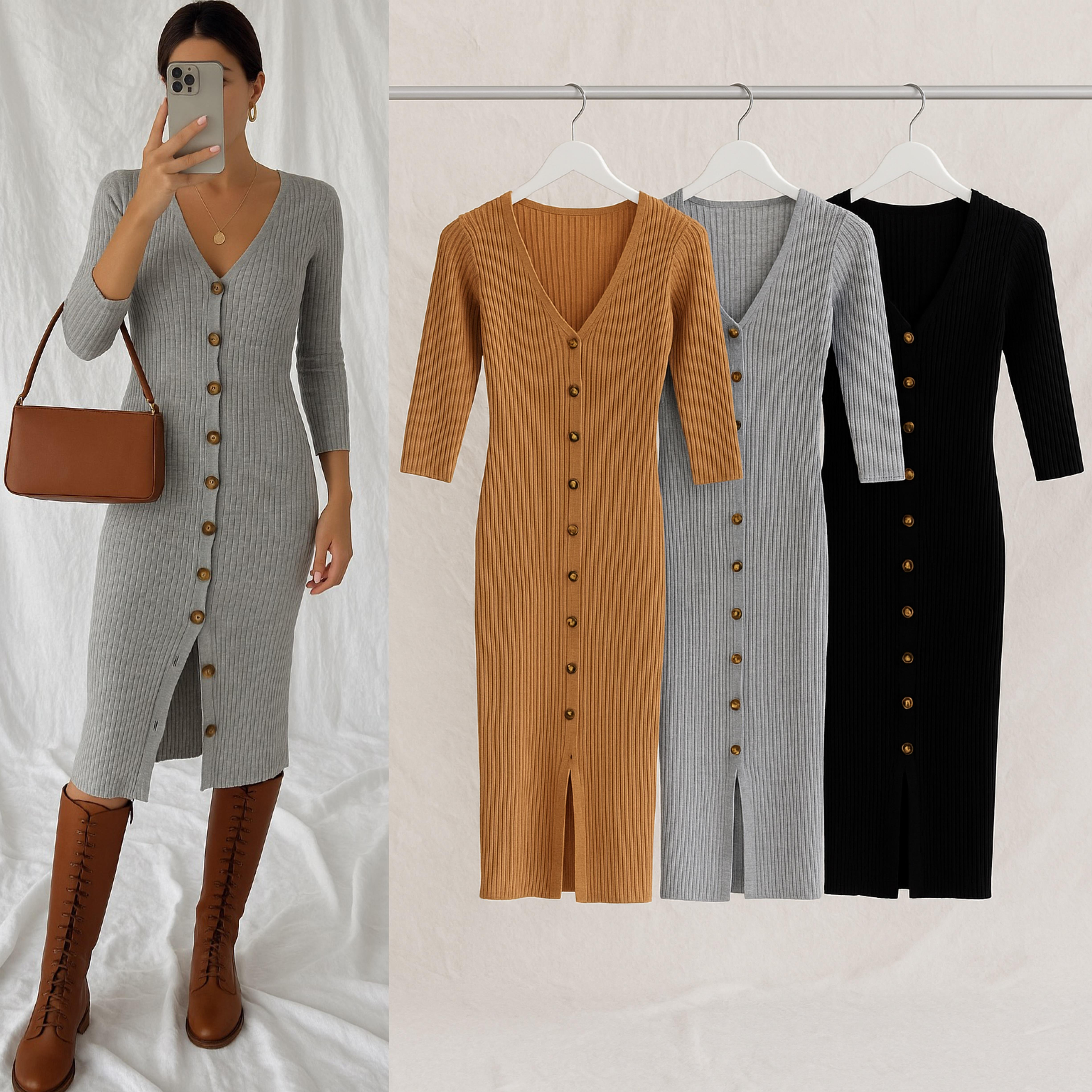 BLENDY AÇILABİLİR DÜĞMELİ TRİKO ELBİSE GRİ