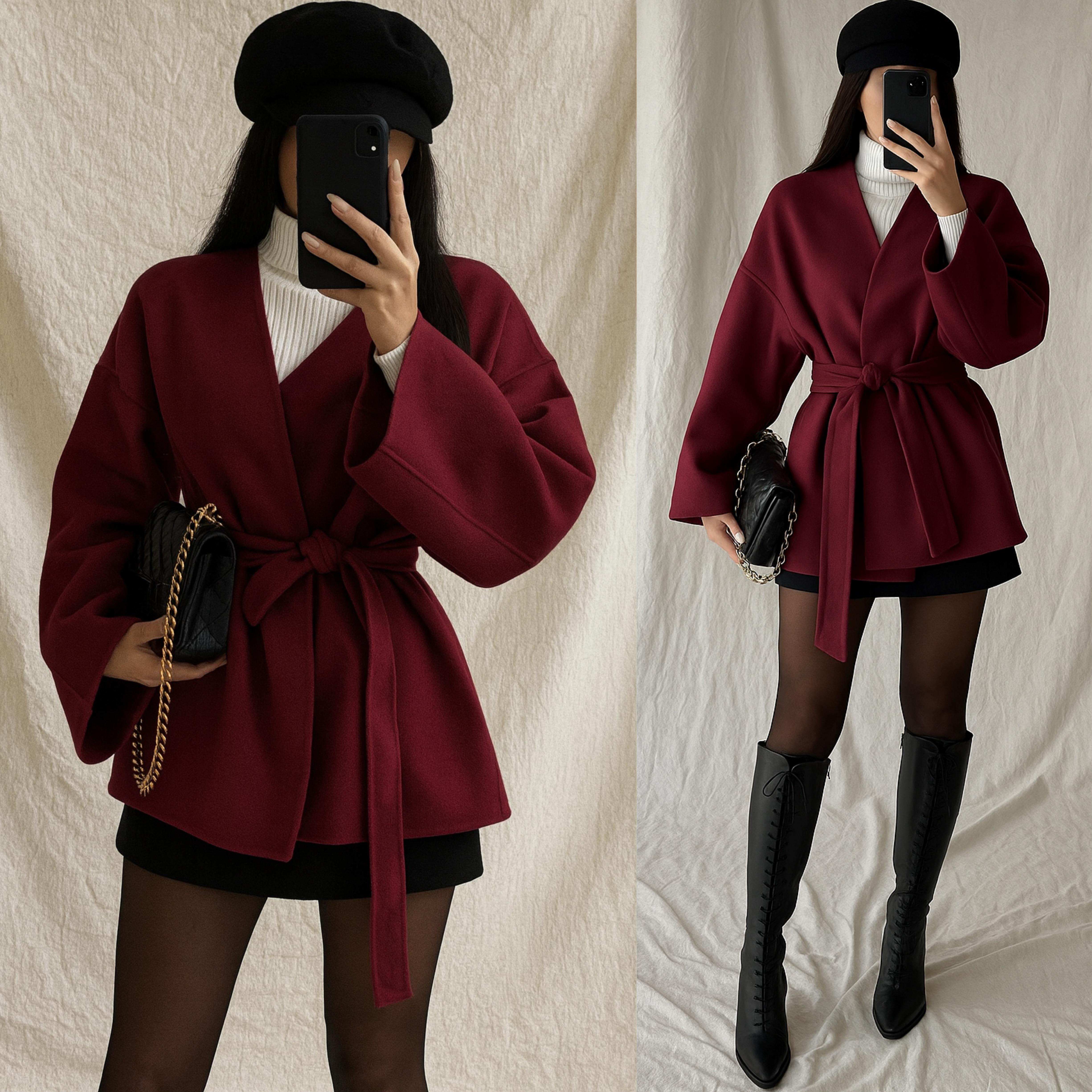 KALIA KAŞE BAĞLAMALI CEKET HIRKA BORDOi
