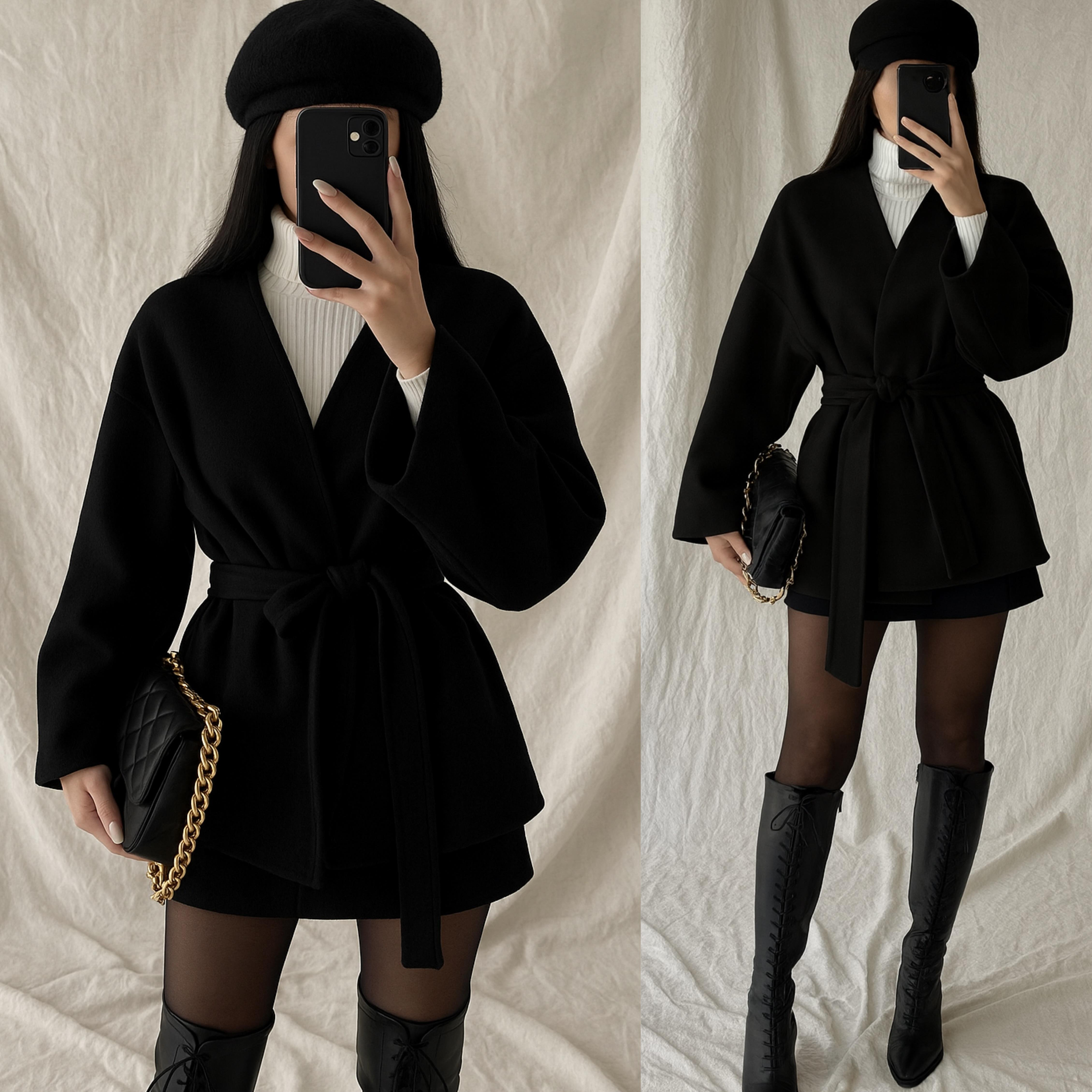 KALIA KAŞE BAĞLAMALI CEKET SİYAH (MYG 66677)