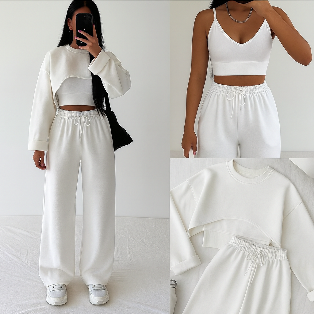 LIONA ÜÇLÜ SWEAT ATLET EŞOFMAN TAKIMI BEYAZ(İÇ GÖSTERMEZ)