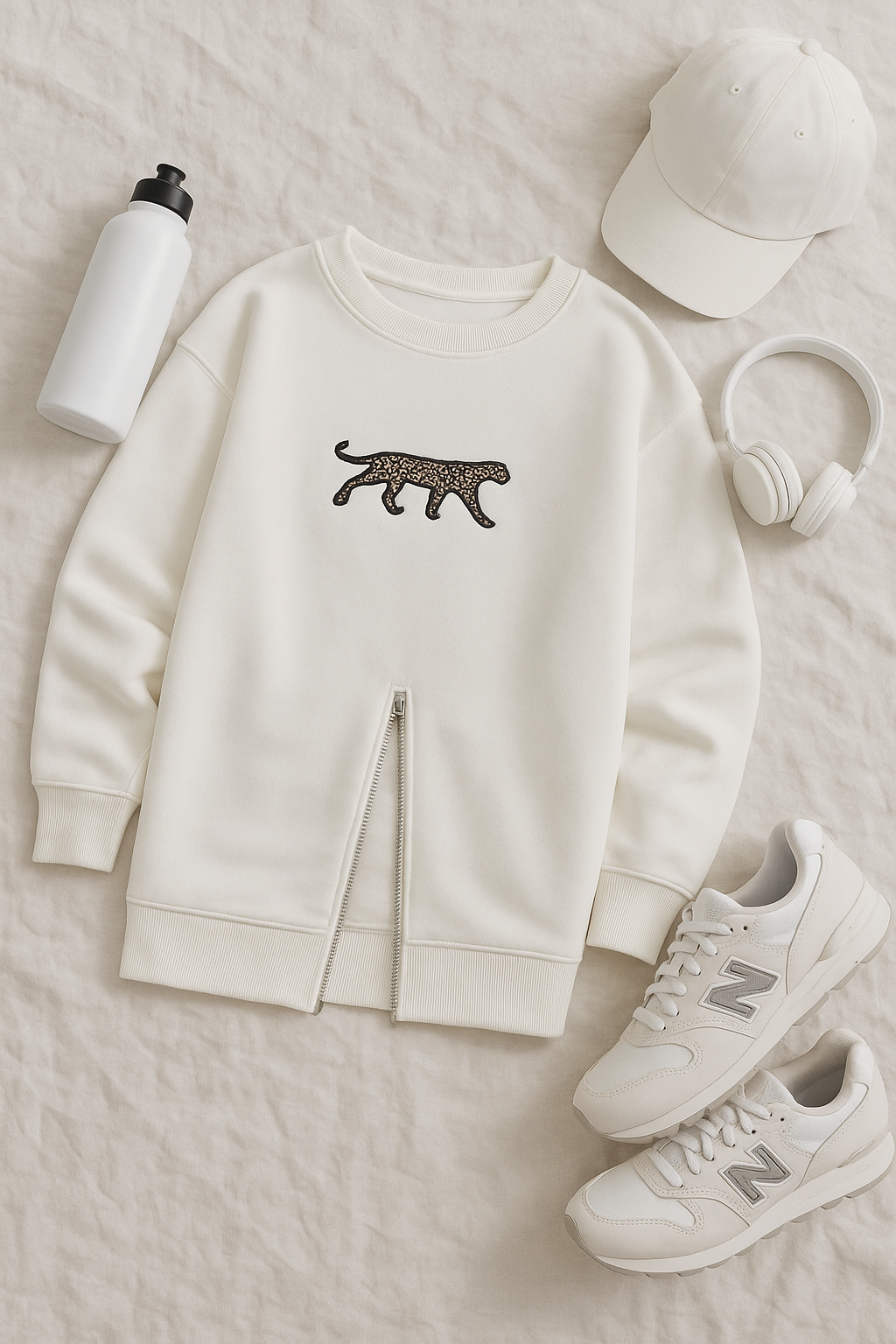 LEO ÜÇ İPLİK ŞARDONLU FERMUARLI SWEATSHIRT BEYAZ