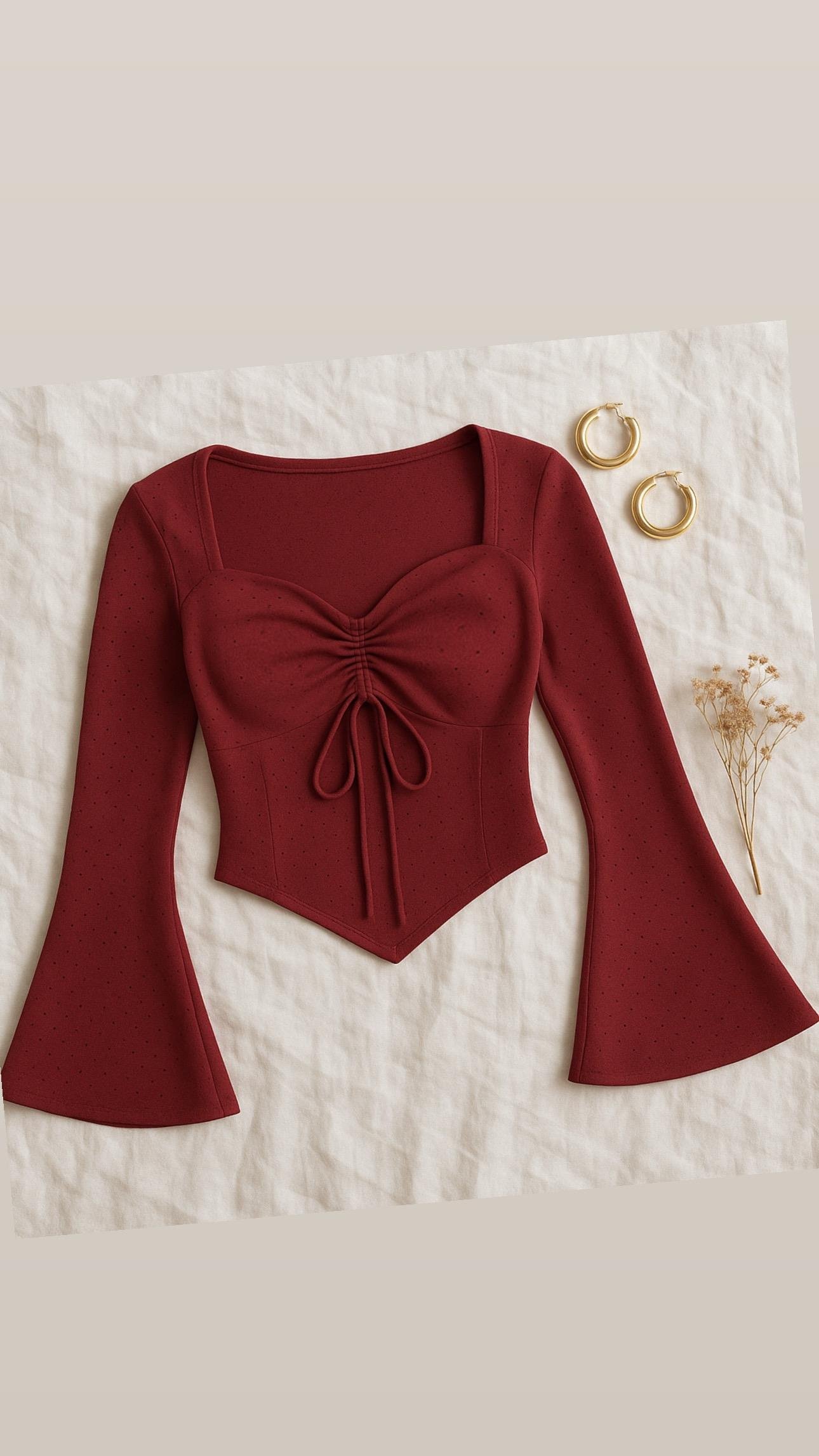 NINA KENDİNDEN GÖĞSÜ DOLGULU BLUZ BORDO