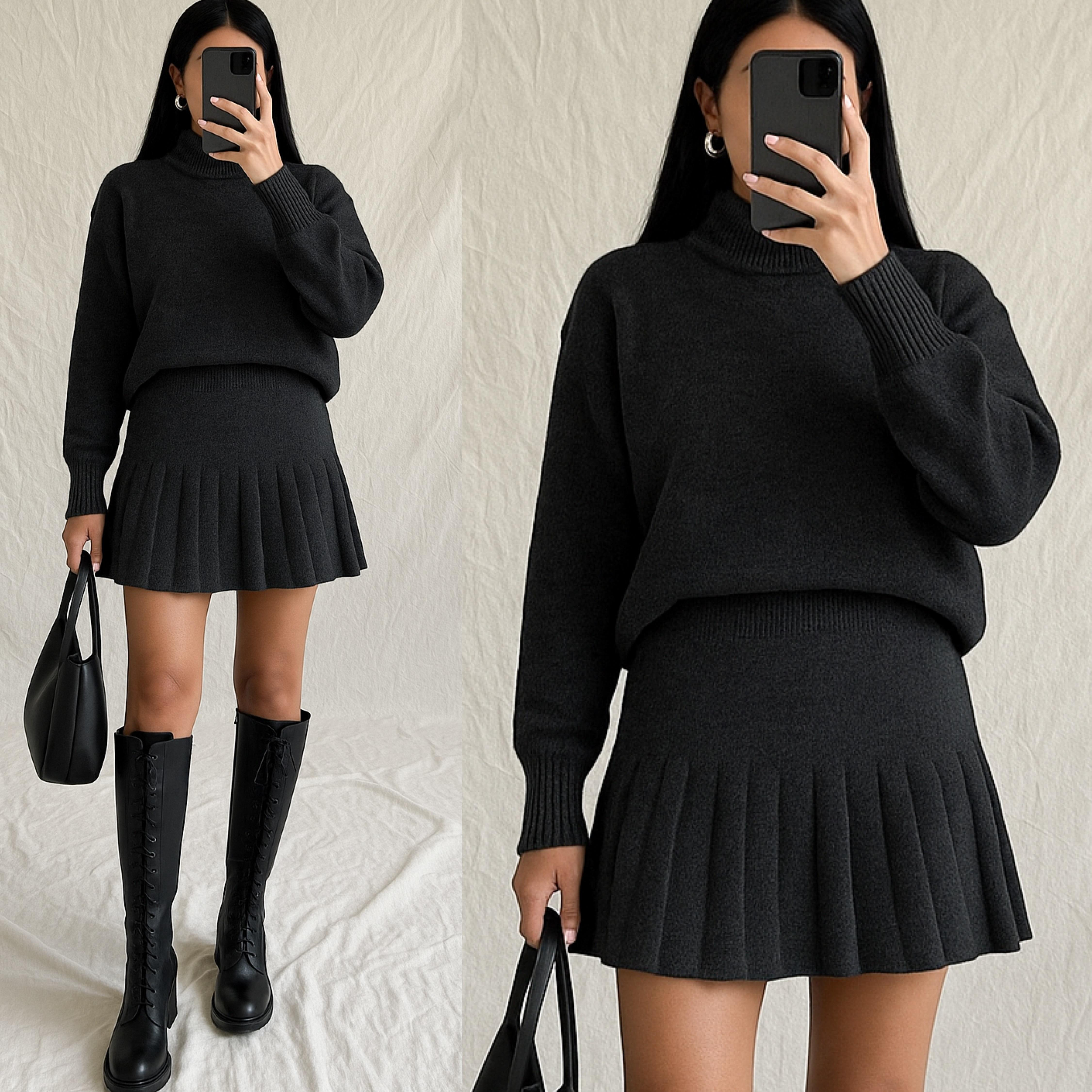 VERA TRİKO KAZAK PİLİLİ ETEK TAKIM ANTRASİT