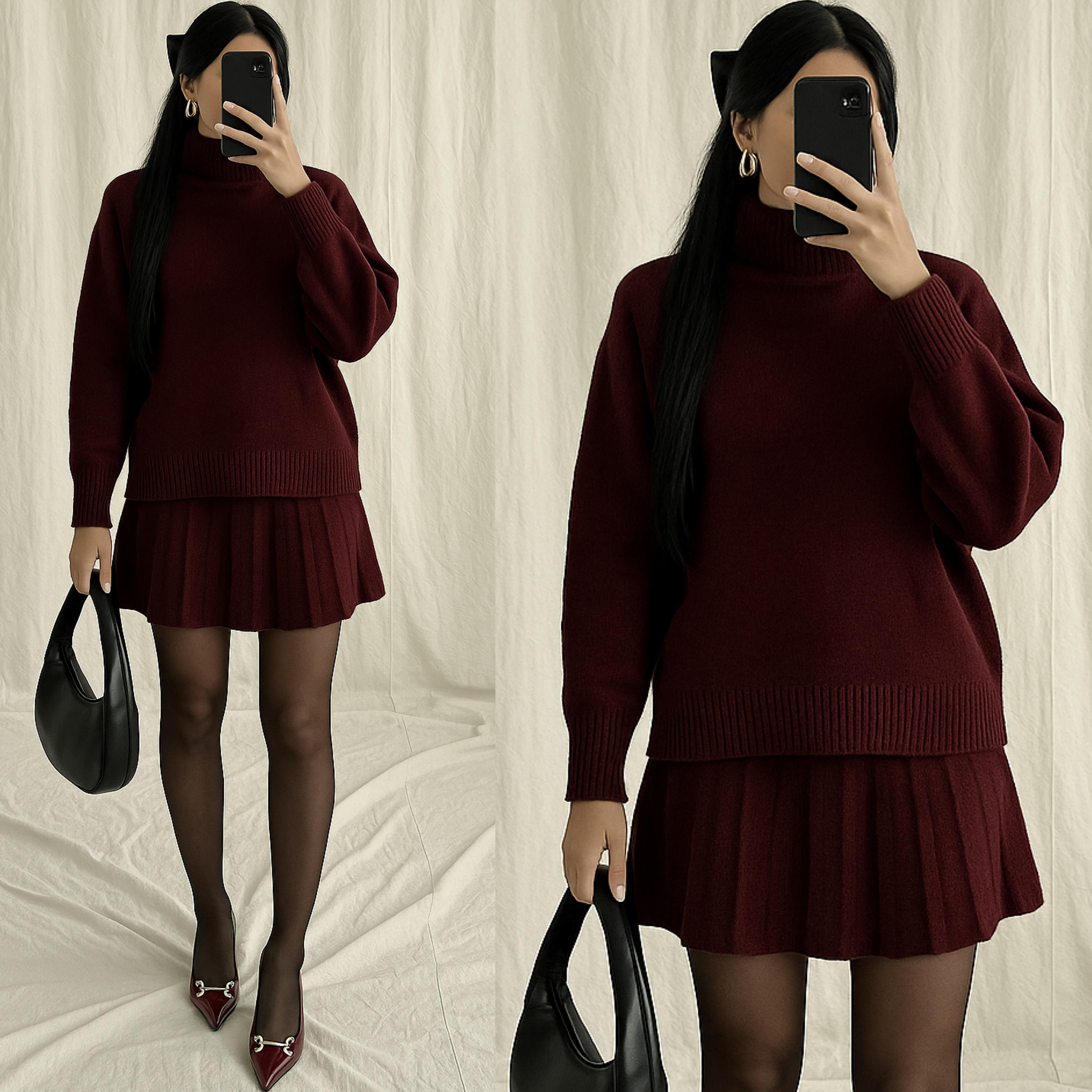 VERA TRİKO KAZAK PİLİLİ ETEK TAKIM BORDO