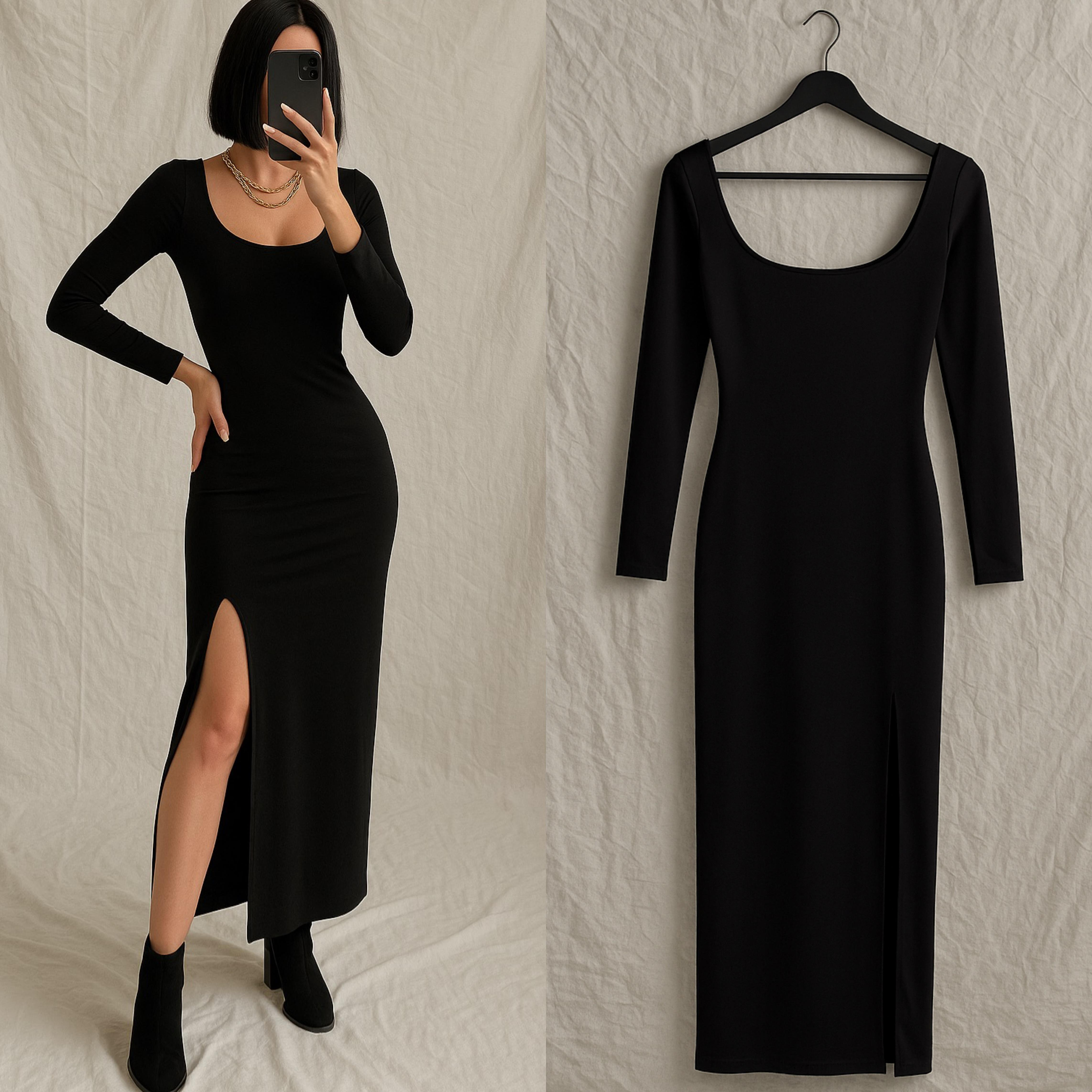 WİSH SANDY KARE YAKA YIRTMAÇLI ELBİSE